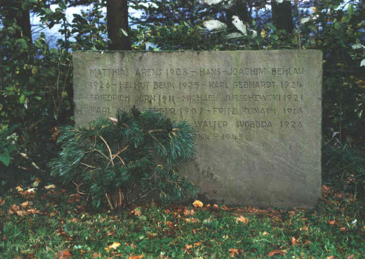 Neben den Soldaten, die einmal in allen Teilen Deutschlands, viele auch in Österreich zu Hause waren, liegen hier Männer, die noch zu Ende des Krieges als Minensucher verunglückt sind. Vielen der bei den letzten Kämpfen an der Westgrenze Deutschlands Gefallenen hatten ihre Kameraden während der fast pausenlosen Kämpfe nur hastig bereitete Grabstätten geben können, viele wurden mit ihrer Kampfgruppe in einem gemeinsamen Grab bestattet, und oft war nicht einmal mehr die Zeit, die Gräber mit Namen zu bezeichnen. Mehr als 200 blieben namenlos. Soweit es möglich war, sind die Toten einzeln gebettet. In einem besonderen Feld liegen die Gräber der Toten, die aus Gemeinschaftsgräbern im Kampfgebiet nicht mehr einzeln geborgen werden konnten und hier zusammen mit ihren Gefährten wieder in Kameradengräbern bestattet wurden.